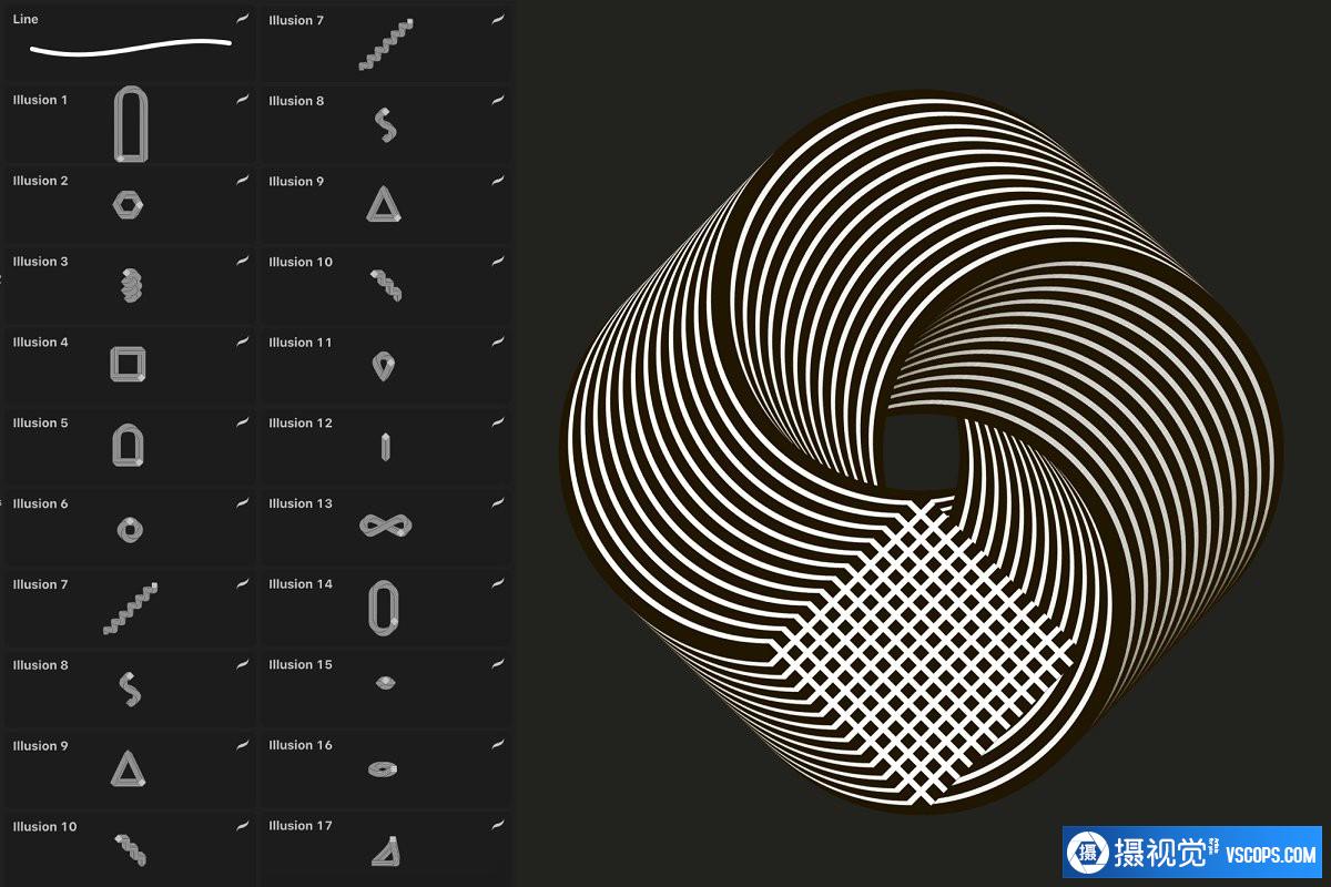 18个用于Procreate的几何,未来派,形状等独特画笔