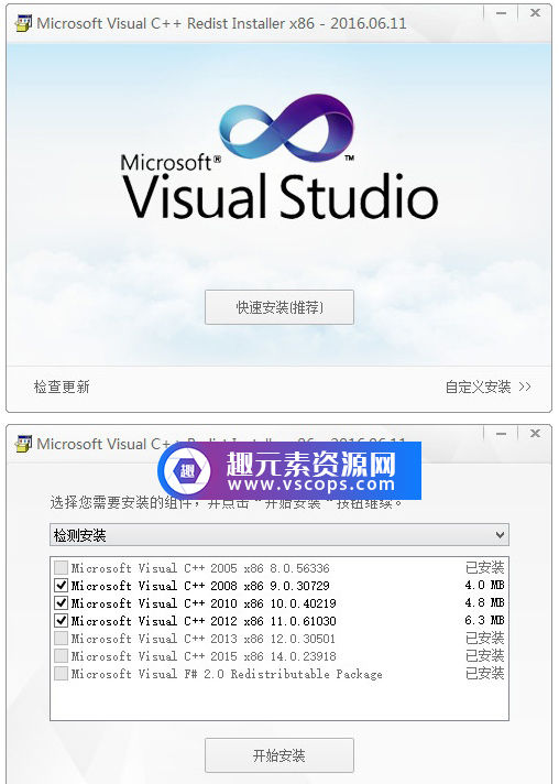 第一个的是国外绿软达人 McRip 封装制作的VC 运行库集合软件安装包(32/64合集)